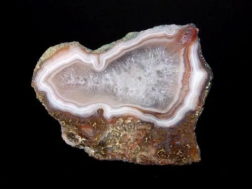 Krásný achát s jemnou kresbou a křemenným jádrem pocházející z katastru obce Bradlecká Lhota o velikosti 4,8 x 4cm, celá polovina, leštěný.