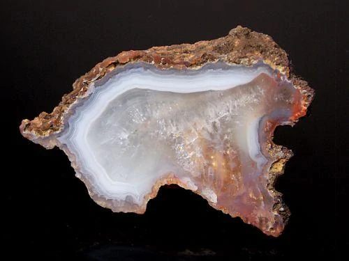 Krásný achát s křemenným jádrem pocházející z katastru obce Bradlecká Lhota o velikosti 6,2 x 4,2cm, celá polovina, leštěný.