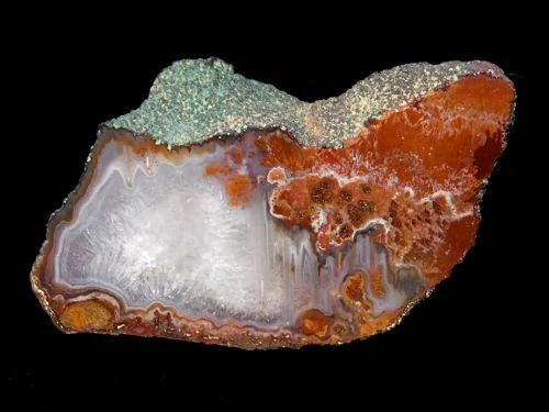 Krásný výrazný achát pocházející z katastru obce Bradlecká Lhota o velikosti 6,3 x 3,7cm, celá polovina, leštěný.