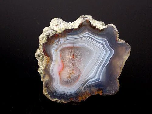 Krásný achát s výraznou kresbou a křemenným jádrem pocházející z katastru obce Bradlecká Lhota o velikosti 5,2 x 5cm, leštěný.