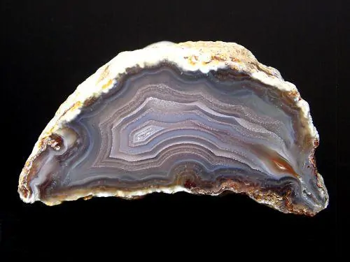 Pěkný achát z mexické lokality Calandria o velikosti 5 x 2,7 x 2,6cm. Celá polovina, leštěný.