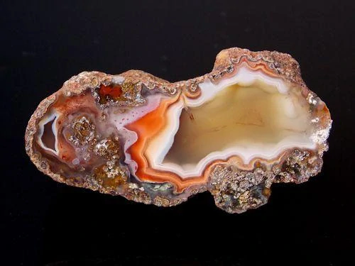 Pěkný barevný achát pocházející z africké lokality Ngabu o velikosti 5,7 x 3,1 x 2,4cm. Celá polovina, leštěný.