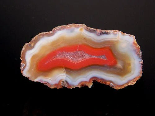 Pěkný barevný achát pocházející z africké lokality Ngabu o velikosti 5 x 2,7 x 3cm. Celá polovina, leštěný.