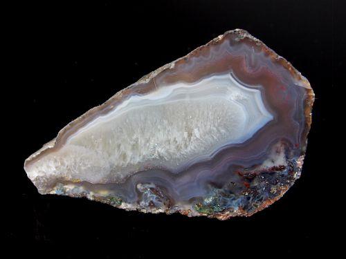 Pěkný achát s křemenným jádrem pocházející z africké lokality Ngabu o velikosti 6 x 3,6 x 2cm. Vzorek má kompletní zadní část. Z užší strany nepatrně vydrolen...