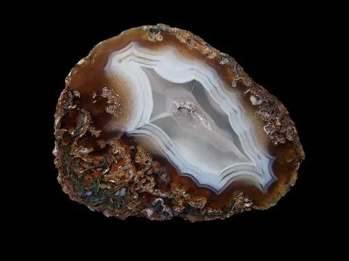 Pěkný achát s mechy  pocházející z africké lokality Ngabu o velikosti 3,9 x 3 x 1,6cm. Vzorek má kompletní zadní část.