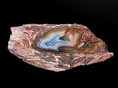 Krásný achát v efektní kombinaci s ryolitem pocházející z turecké lokality North Ankara o velikosti 7,2 x 3,4cm, leštěný.