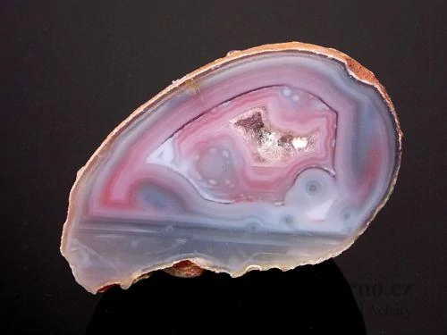 Krásný achát s efektní jemnou kresbou pocházející z lokality Tete o velikosti 7,8 x 5cm, celá polovina, leštěný.