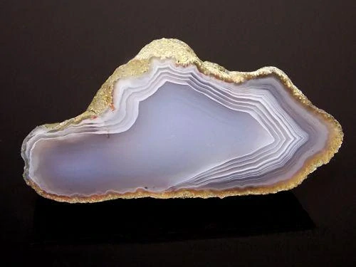 Achát s efektní kresbou pocházející z lokality Železnice o velikosti 6,7 x 3,2cm. Celá polovina, leštěný.