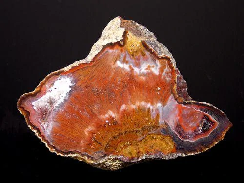 Achát s pěknou barevnou kresbou a efektními mechy pocházející z lokality Železnice o velikosti 6,8 x 4,2cm. Celá polovina, oblý brus, leštěný.