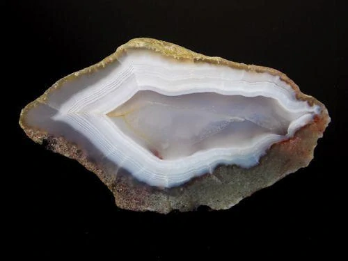 Krásný achát s chalcedonovým jádrem pocházející z lokality Železnice o velikosti 6,5 x 3,7cm. Celá půlka, leštěný.