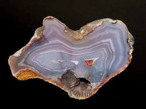 Achát se zajímavou kresbou pocházející z okolí obce Železnice o velikosti 6,3 x 4,7cm, celá polovina, leštěný.