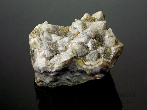 Kombinace plísňových krystalů a zonálního hradbového ametystu z bochovických žil. Vzorek má velikost 8,5 x 9 x 4,5cm.