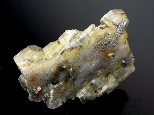 Pěkný "plovák" lesklých tabulkovitých krystalů barytu s drobným pyritem. Vzorek pochází z marocké lokality Bou Nahas, která leží v těžební oblasti Oumjrane o celkové velikosti 7 x 6,7 x 1,7cm.