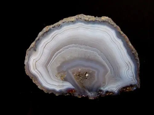 Krásný sbírkový achát s typickou kresbou pocházející z Levína o velikosti 4 x 3cm, celá půlka, leštěný.