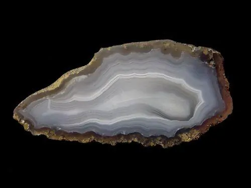 Achát s typickou výraznou kresbou o velikosti 5,5 x 3cm, celá půlka, leštěný.