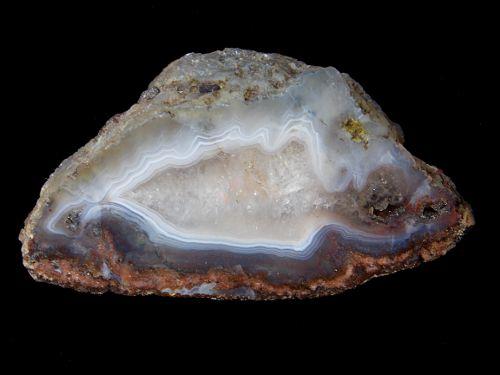 Krásný achát z lokality Levín o velikosti 6,7 x 3,5cm. Celá půlka, leštěný.