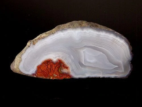 Krásný achát s výraznou jemnou kresbou ze Staropacké hory o velikosti 6,3 x 3cm, prdélka má hloubku 2,2cm, celá polovina, zoblená hrana, leštěný.