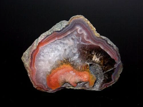 Pěkný achát s vyraznými mechy pocházející z lokality Železnice o velikosti 5,3 x 4,7cm. Celá půlka, leštěný.